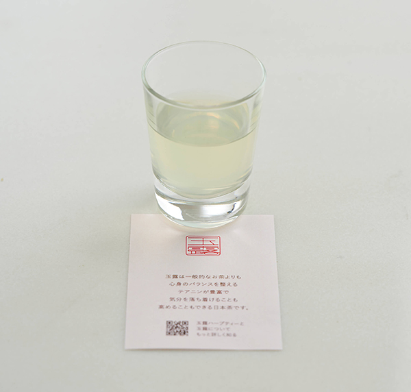店内では玉露ハーブティーを試飲できます。